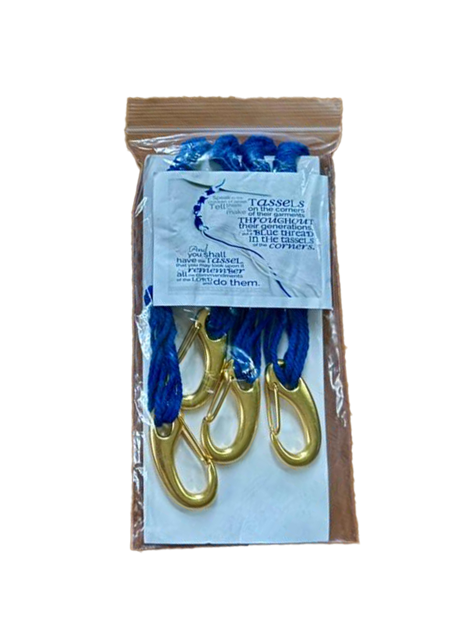 Traditional TsitTsit (fringes) in beautiful blue coloring. Each set includes four blue fringes, perfect for attaching to the four corners of your garment as commanded in the Torah. "Speak to the children of Yisra'el, and say to them to make tzitziyot on the corners of their garments throughout their generations, and to put a blue cord in the tzitzit of the corners." - Bemidbar (Numbers) 15:38 These fringes serve as a reminder of the commandments of YHWH and are made with quality materials for durability.